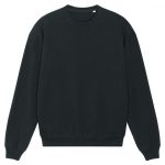 Unisex boxy dry hand-feel crew neck sweatshirt. Set-in sleeve. 2×1 rib at neck collar, sleeve hem and bottom hem. Herringbone back neck tape. Self-fabric half-moon at back neck. Armhole, sleeve hem and bottom hem with twin-needle topstitch. GOTS certified. Fairwear certified. Vegan certified.
